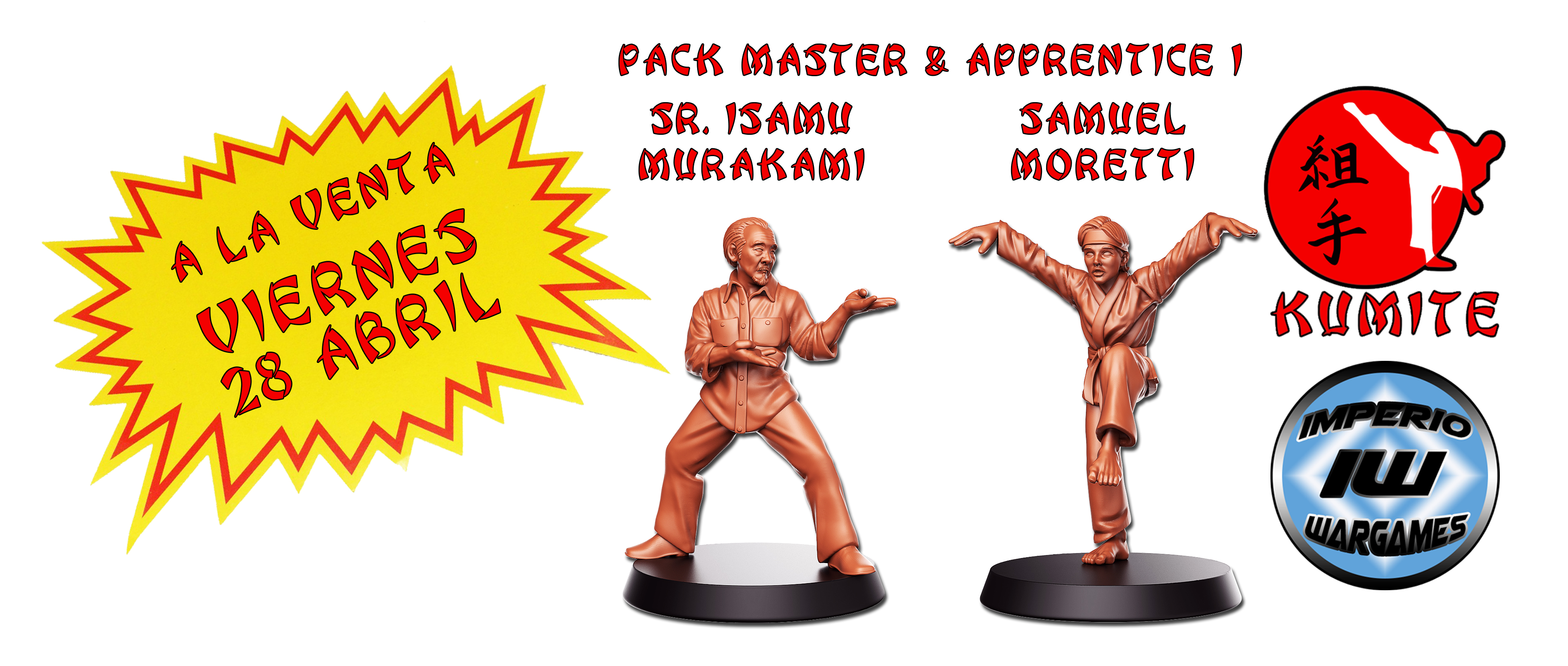 Nos complace deciros que… ¡El próximo 28 de Abril ponemos a la venta el primer pack Master & Apprentice! Compuesto por las figuras de Isamu Murakami y Samuel Moretti para Kumite! Recordaron que las minis se pueden comprar tanto individualmente como por pack, incluyendo dos cartas exclusivas para cada luchador, y una carta de evento exclusiva para los que adquieran el Master & Apprentice I. Esperamos que os gusten.