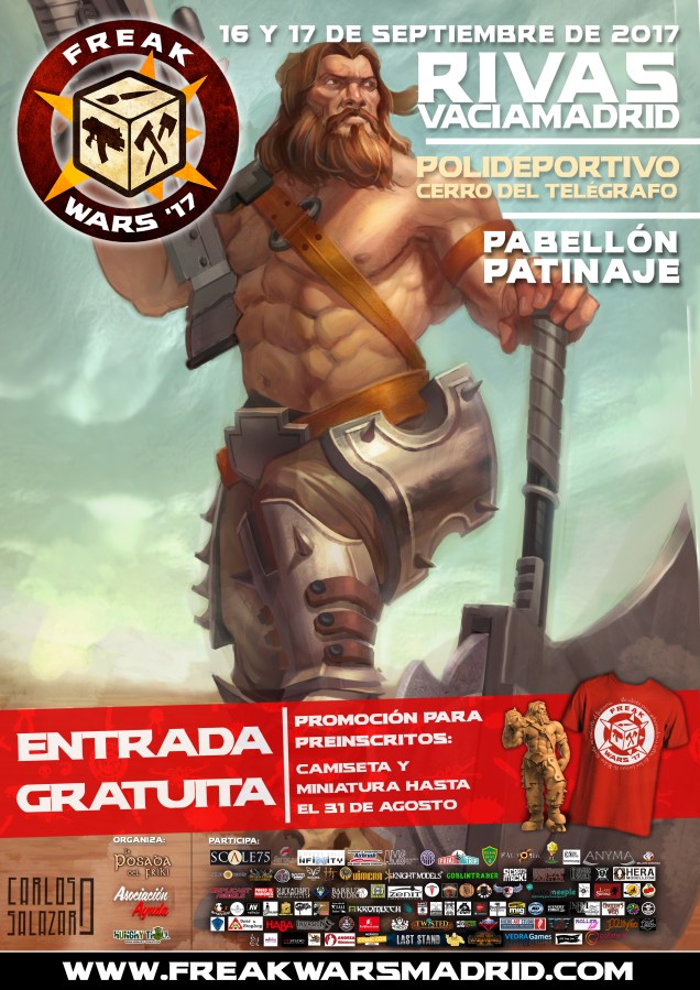 Hola a todos. Nos complace anunciaros que el fin de semana del 16 y 17 de Septiembre estaremos en las Jornadas Freak Wars en Rivas VaciaMadrid, en el polideportivo Cerro del Telégrafo. Además… iremos con novedades. Para más información sobre estas jornadas visitad su web: www.freakwarsmadrid.com.