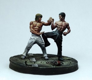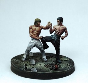 Nos alegra dejaros estas fantásticas fotos del diorama formado por los personajes de Kumite, Zhao y Luke, pintadas por el maestro Antonio Peña. Como se puede apreciar, a recreado en el pintado de las miniaturas los tonos y colores como en la portada del reglamento del juego. Espero que disfrutéis.