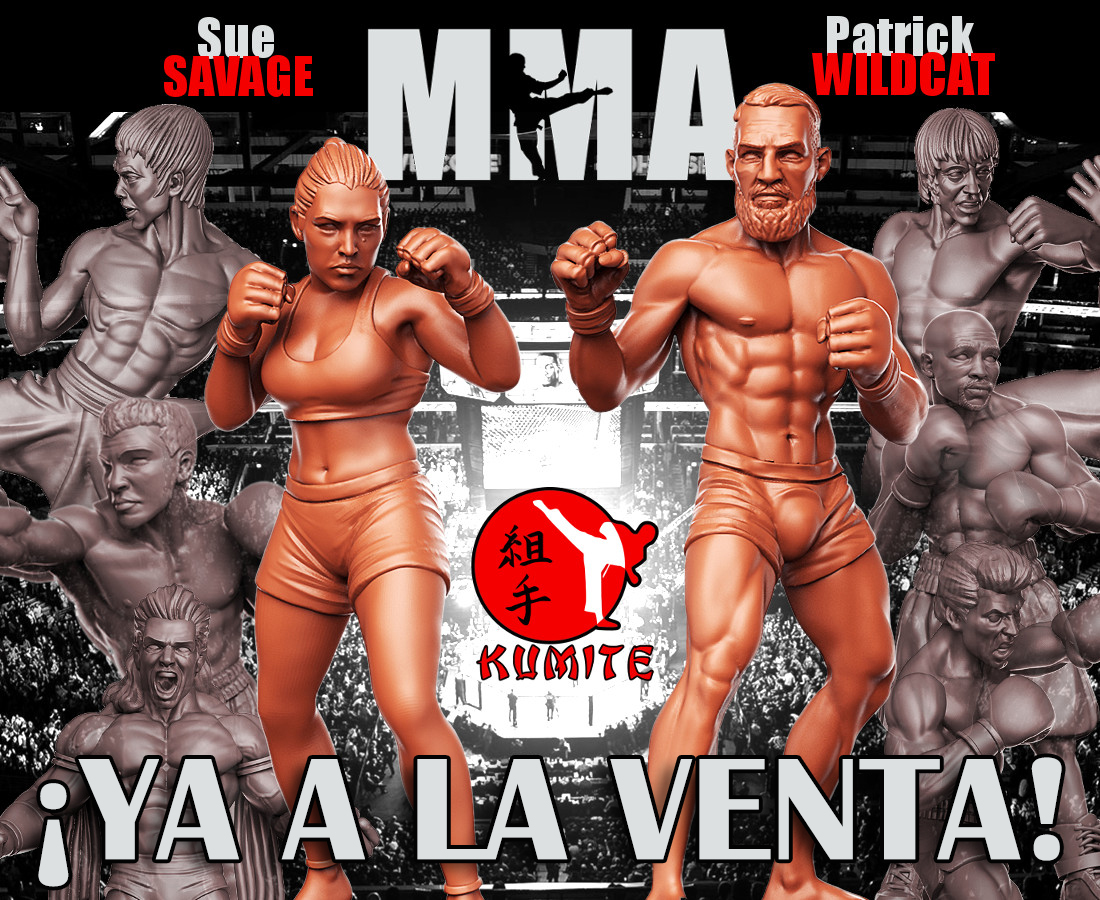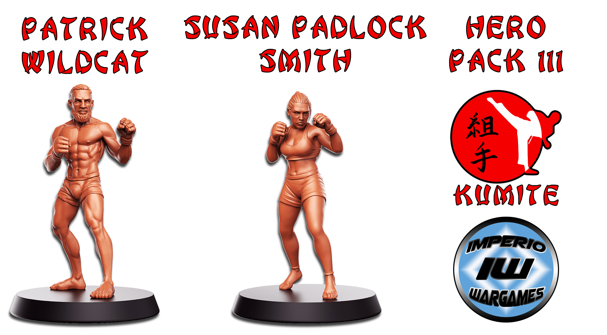 Volvemos de nuevo con novedades para Kumite. Ahora os mostramos los renders de las dos próximas figuras que verán la luz, que a su vez conformarán el Hero Pack III – MMA Stars: Patrick ‘Wildcat’ y Susan ‘The Padlock’ Smith. Ambas figuras se podrán adquirir tanto juntas como por separado, pero tened en cuenta que con el pack con dos miniaturas, obtendréis una Carta de Evento exclusiva de dicho pack.